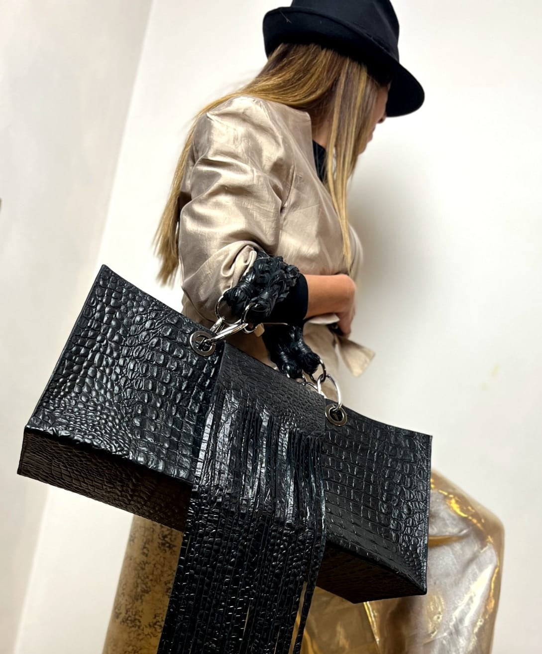 Ogni borsa nasce nel mio laboratorio, curata in ogni dettaglio: dalla scelta delle pelli alla rifinitura delle cuciture, per creare pezzi unici che ti accompagnino ogni giorno.